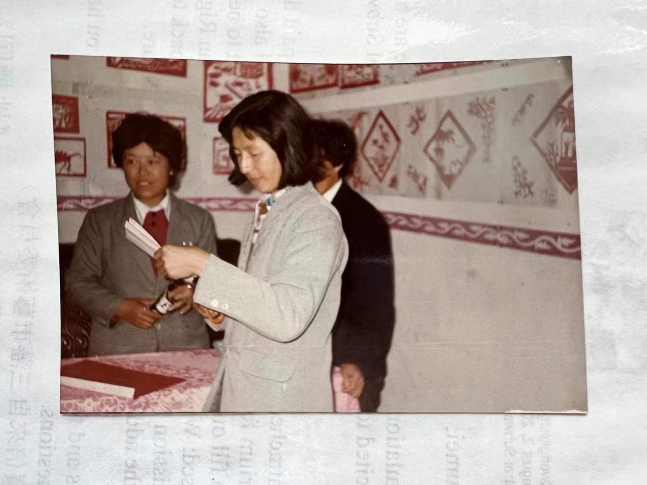 后来,县里领导经过研究,县文化局、文化馆决定给她倒出来文化馆的走廊,让她立刻把剪纸运到县文化馆进行悬挂、布展、展出。
